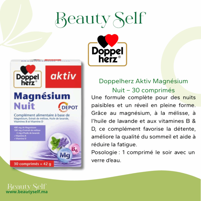Soyez le premier à laisser votre avis sur “Doppelherz Aktiv Magnésium Nuit – Sommeil & Détente (30 comprimés)” Annuler la réponse